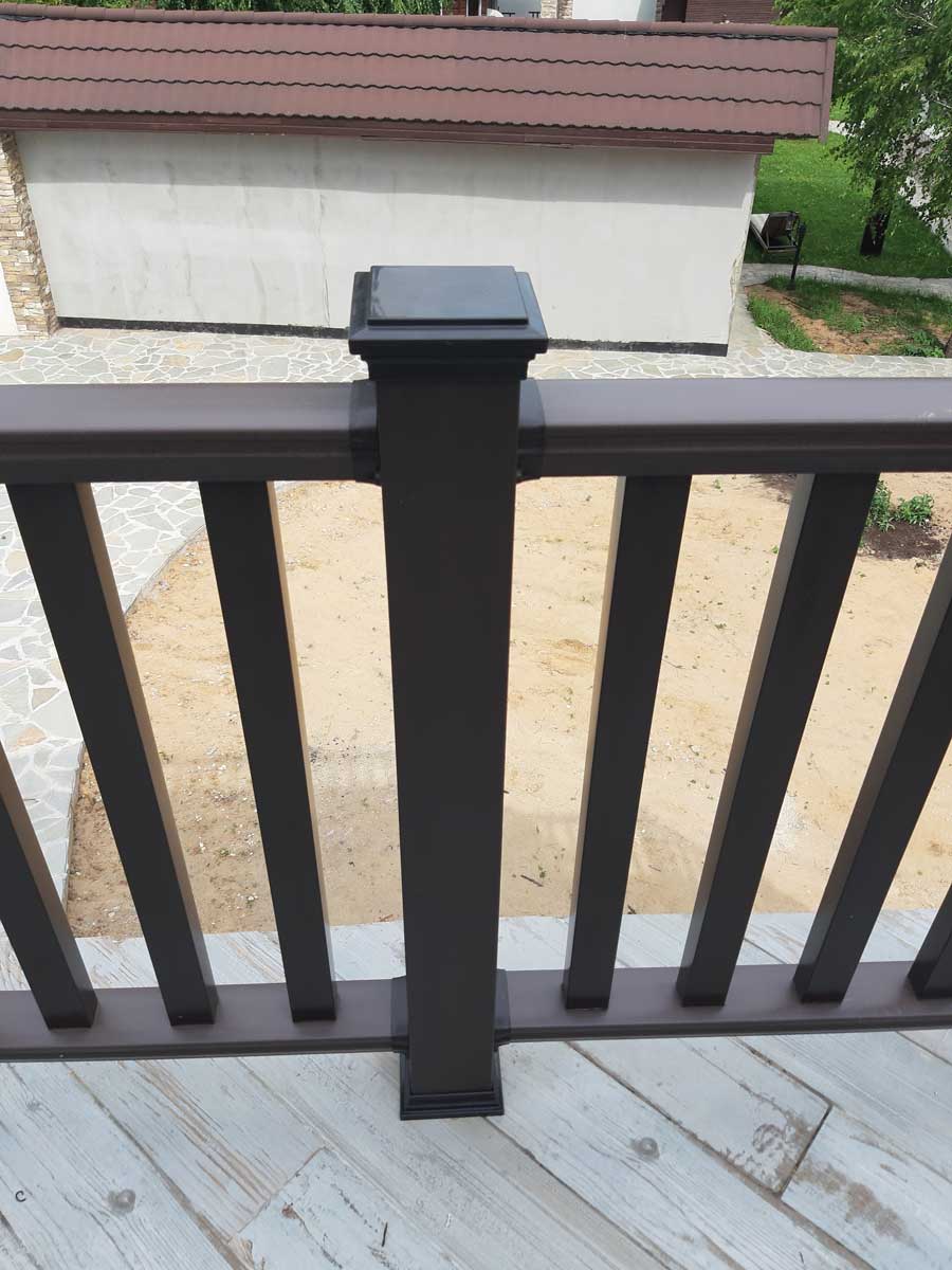 Произвели поставку и шеф-монтаж ограждений из ДПК Holzhof цвета венге (темный шоколад) на открытых площадках на 2-м и 3-м этажах частного дома.